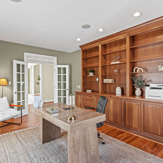 Set atop a picturesque 0.61-acre lot in the prestigious Lenah Run community, this exceptional 6,200-square-foot estate offers a rare blend of timeless elegance and inviting warmth. Upon entry, soaring ceilings and a dramatic two-story family room make a striking first impression. Imagine hosting intimate, or grand and lively, gatherings in the formal living and dining spaces that are made for entertaining. A private library with custom built-ins offers a peaceful and quiet retreat. Enhancements such as plantation shutters throughout, integrated sound, and whole-home connectivity seamlessly elevate the home. Step into the gourmet kitchen, with new stainless-steel appliances, a huge kitchen island and large breakfast area. The expansive, and partially covered deck overlooks a spectacular 20' X 40' saltwater pool and fenced backyard, complete with a serene, wooded backdrop. Upstairs, the luxurious primary suite serves as a true sanctuary, featuring a spa-inspired bath and an expansive walk-in closet with heated floors. Two secondary bedrooms share a Jack-and-Jill bath, while an additional bedroom and full bath provide comfort and flexibility for family or guests. The fully finished walkout basement is designed for entertaining, featuring a custom bar, recreation room, and media room, ideal for movie nights and gatherings. Nestled in a quiet neighborhood known for its friendly community and tranquil setting, this home is ideally located near shopping and dining, with convenient access to Route 50, Route 15, Dulles Airport, Leesburg, Middleburg, and Chantilly. This is more than just a house—it’s a place to live fully, entertain effortlessly, unwind comfortably, and truly feel at home.